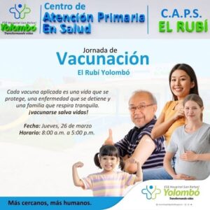 Jornada de Vacunación en el C.A.P.S. El Rubí – Yolombó Las vacunas son una de las formas más seguras y efectivas de proteger la vida.